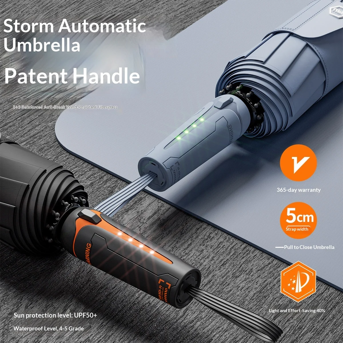 Automatische paraplu, paraplu voor alle weersomstandigheden, grote versterkte zonbescherming, UV-bescherming, zonnescherm, opvouwbare parasol