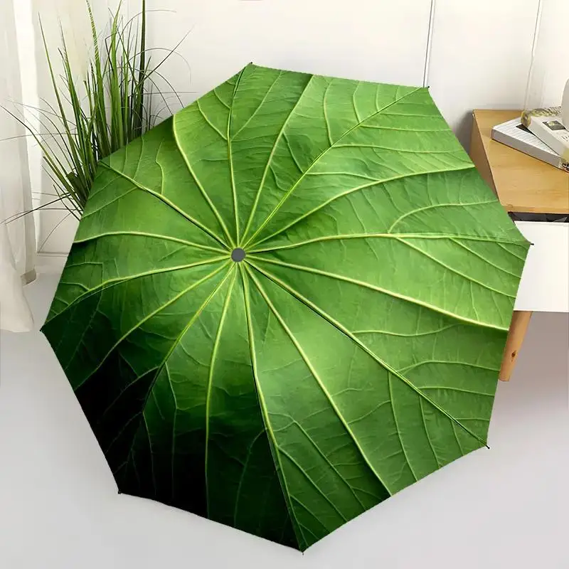 1 stuk automatische open/sluit paraplu met Monstera-bladontwerp - groen en zwart bladpatroon, 8-ribben zwaar ijzeren frame, automatisch