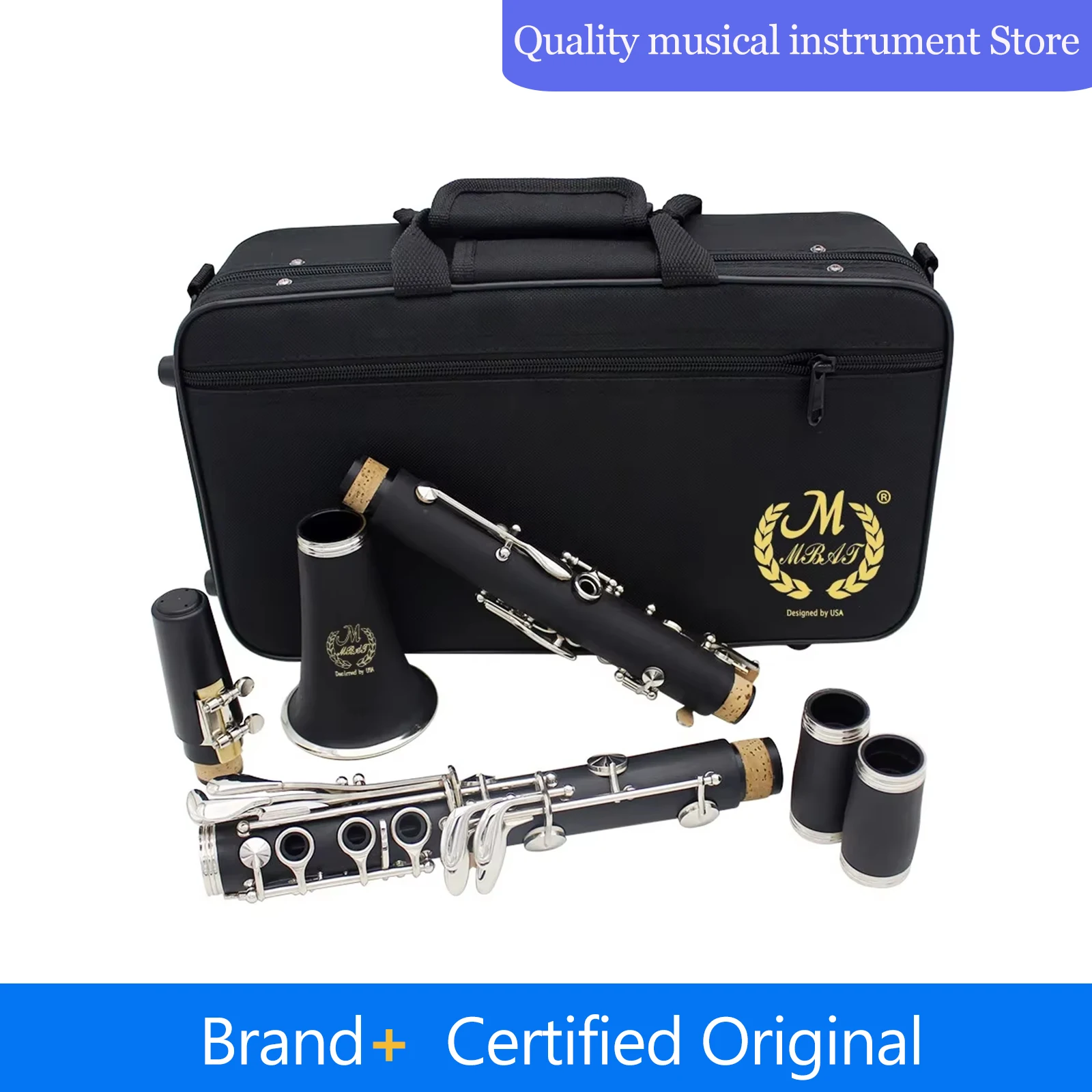 M MBAT-klarinet 17-toetsen metalen zwarte buis Hoogwaardig instrument Examen/prestaties/oefenen Speciaal Duurzaam met kopstukrietclip