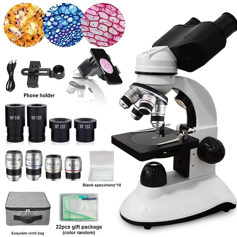 Verrekijkermicroscoop 40X-2500X HD Inspectielaboratorium Optische microscoopgereedschapset voor scholen en thuis en wetenschappelijk onderzoek