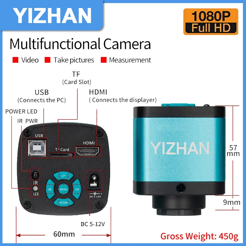 YIZHAN 4K Ultra-HD 60MP Digitale Microscoop HDMI Type-C Industriële Camera 215X 150X 2.0X 0.5X Lens voor PCB Solderen/Telefoon Reparatie