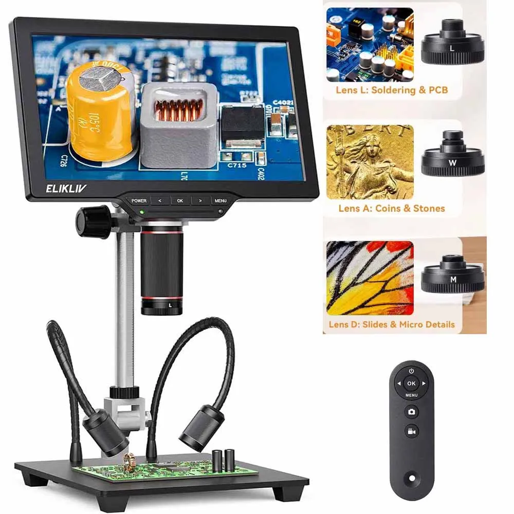 Elikliv TL301 Max 4K 2000x digitale microscoop met 3-lenzen 10 ''soldeermicroscopio voor elektronica PCB-reparatie HDMI-microscoop