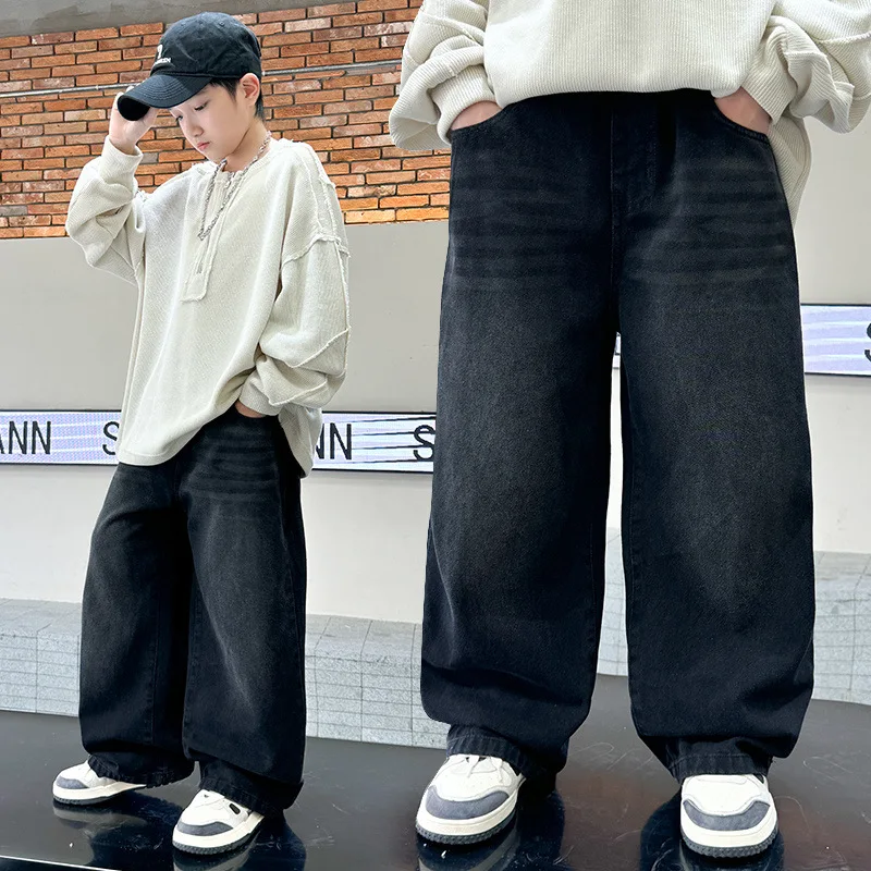 Nieuwe collectie jongens jeans voor lente en herfst, trendy streetwear, rechte pijp, wijde pijp, denim broeken voor tienerkinderen