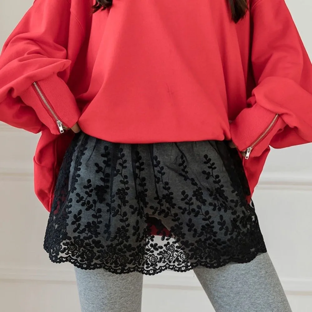 Hoge taille kanten onderrok slips zoete transparante mesh onderrok slips jurk korte borduurwerk bloemvoering petticoat dames