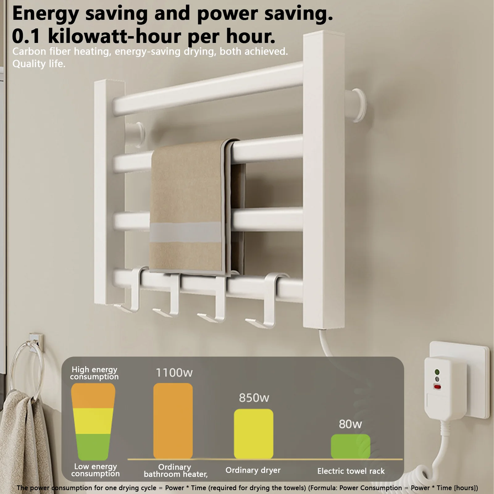 Slim elektrisch handdoekenrek voor huishoudelijke badkamers, badkamers met constante temperatuur, installatieapparaat zonder boren voor de badkamer