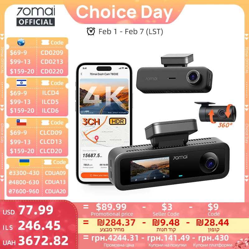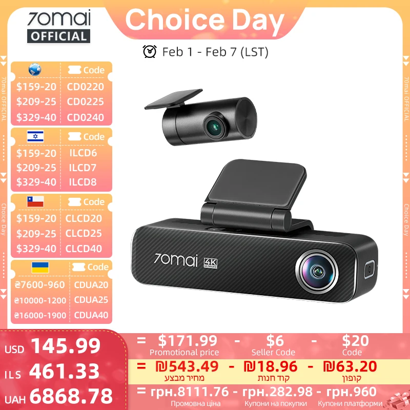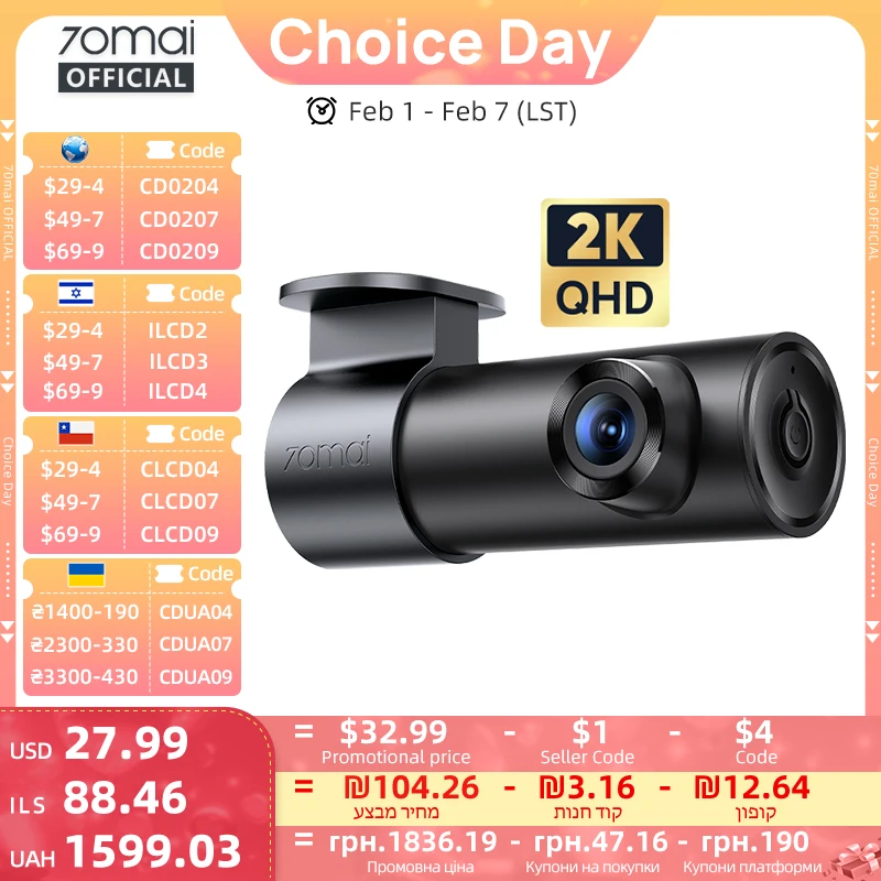 70mai Dash Cam M310 Plus 2K 1440P 143 ° FOV F1.55 Smart Voice Control 24H Parking Guard Nachtzicht 70mai M310 Plus 2K Auto DVR