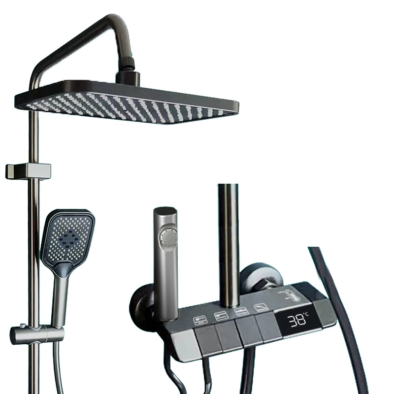 Zwarte LED Smart Digital Display douchefacet Pianoset Regenstijlsysteem grijs Digitale boxer Tap Bidet show