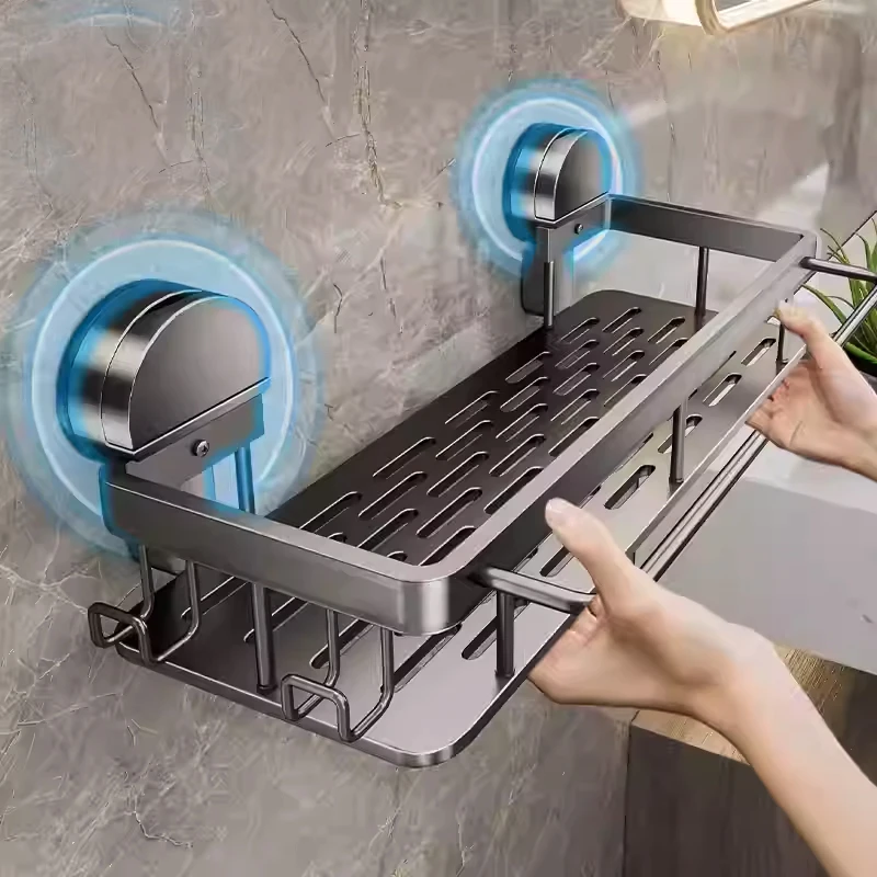 Zuignap Badkamer Plank Geen Boor Wandmontage Shampoo Fles Doucherek Toilet Opbergrek Aluminium Badkamer Keuken