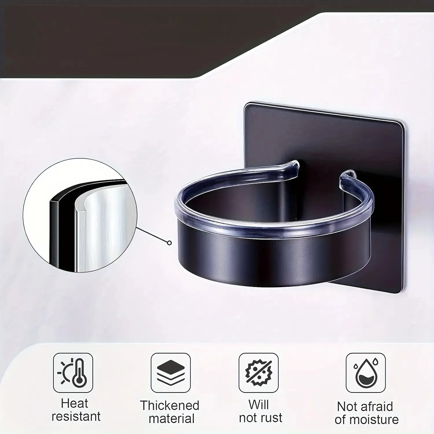 1Pc Wandgemonteerde föhnstandaard zonder boor - badkamerorganizer met meerdere haken, ruimtebesparende opslag