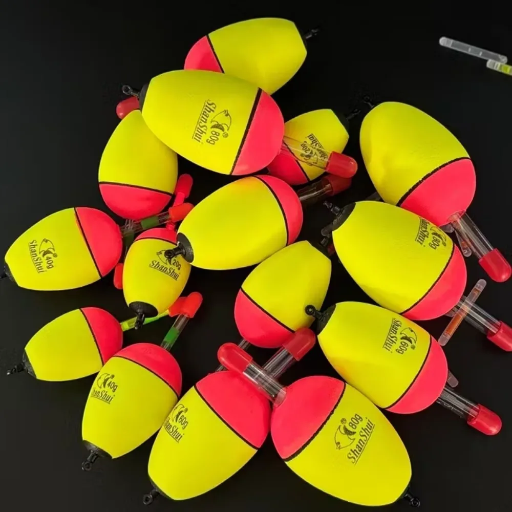 10 stks/partij EVA Visdobbers Set Zee Vis Vlotter 10g-50g Bobber Night Lichtgevende Sticks Buik Gooi hengel Visgerei Accessoires