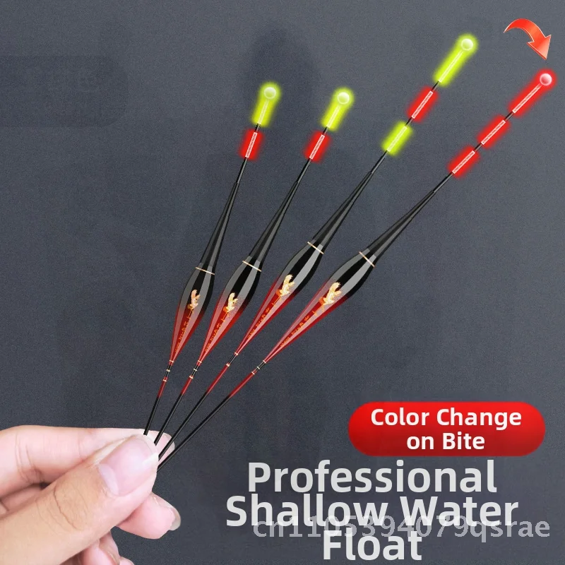 Korte vlotter voor tweeërlei gebruik voor ondiep water Lichtgevende hoge gevoeligheid dag/nacht visvlotter met bijthaak Kleurverandering Nano