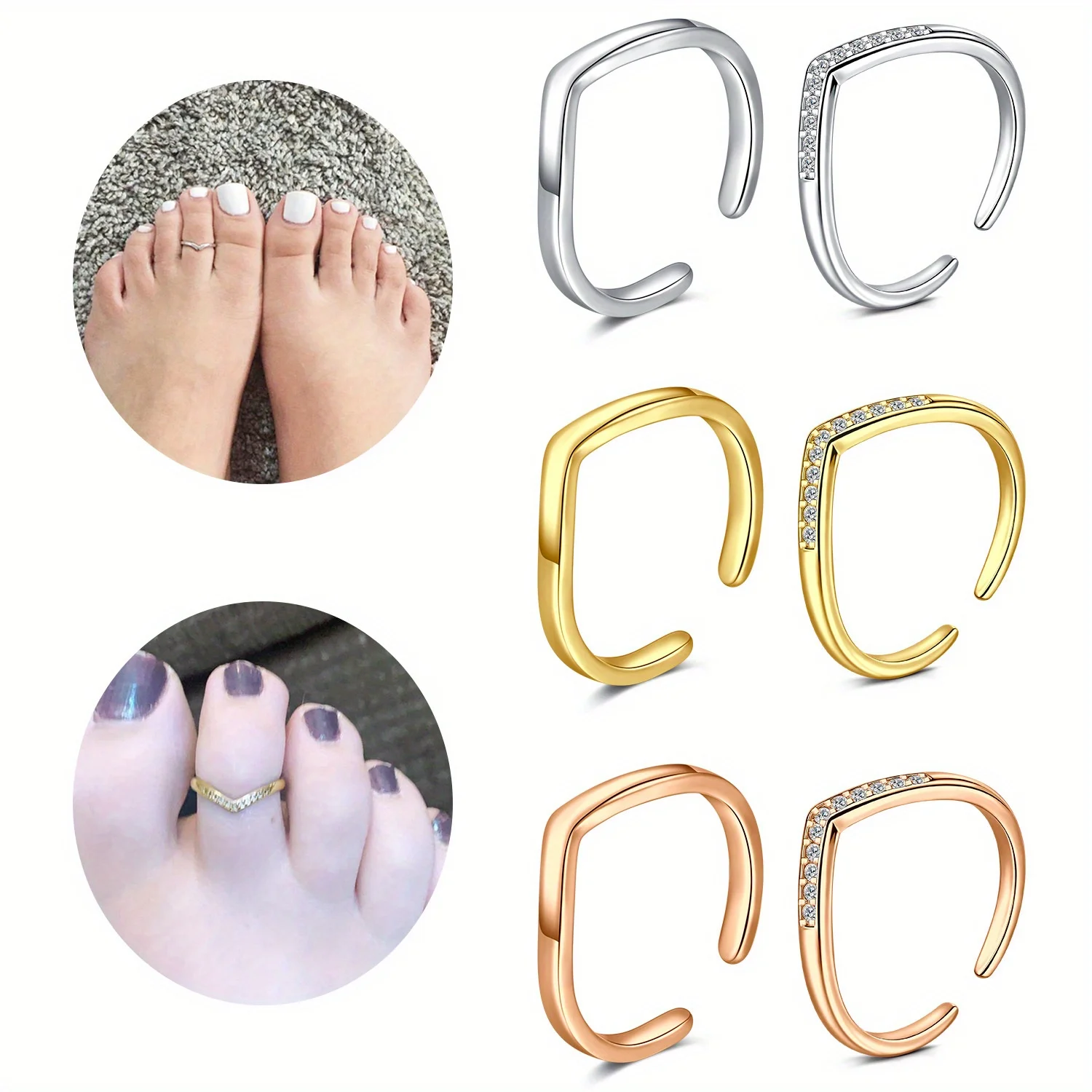 2 stuks verstelbare teenringen met zirkonia, 304 roestvrijstalen teenringen, damesvoetsieraden voor casual kleding