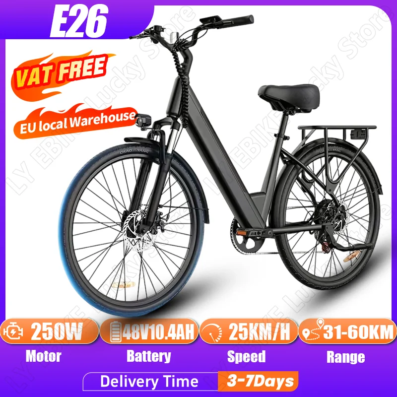 Elektrische fiets 250W borstelloze motor 48V10.4AH lithiumbatterij Volwassen elektrische fiets 26-inch band Stedelijke commuter E-bike