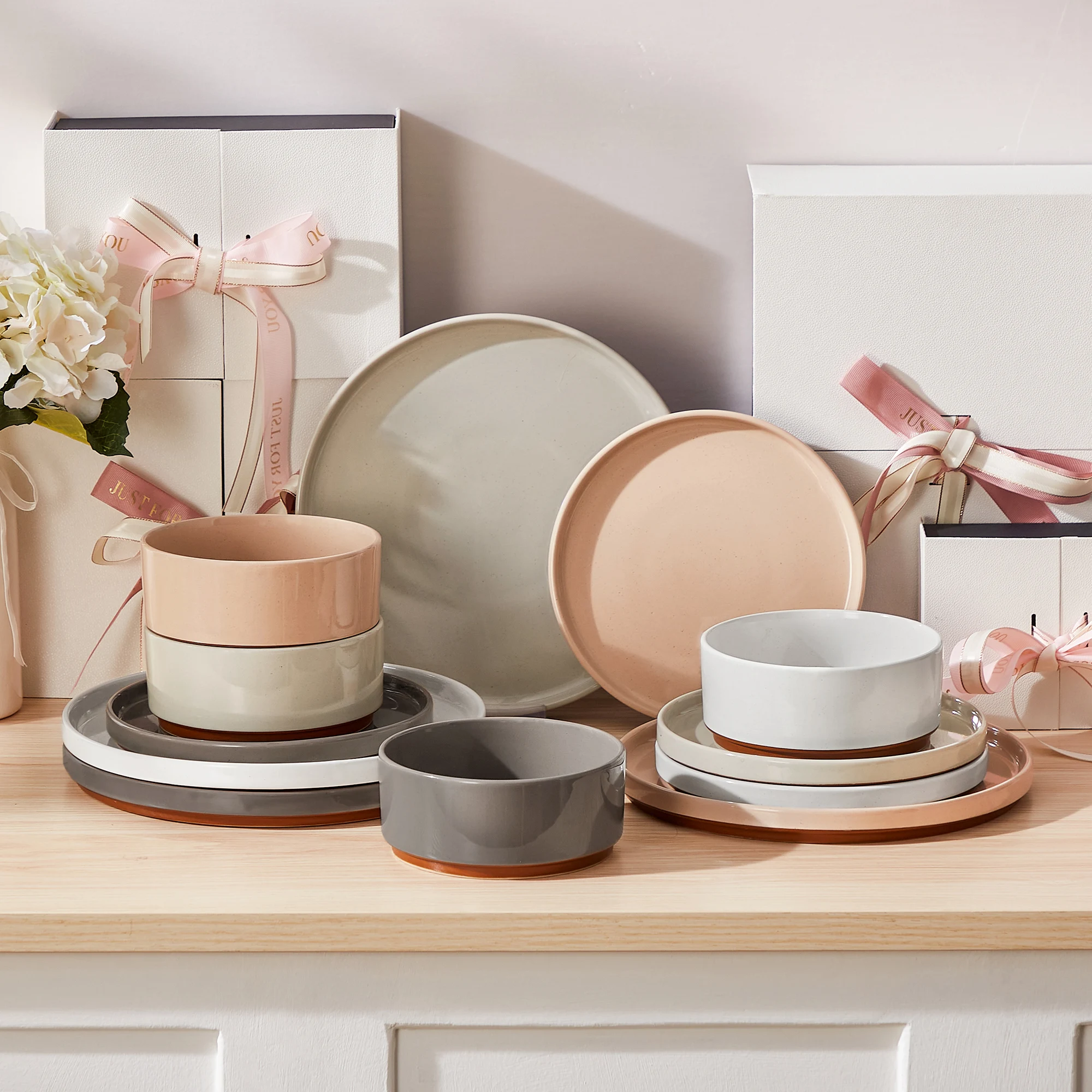 Keramisch servies - Esthetische kommen & borden met gerimpelde rand, onderglazuurkleur, dessertset voor dames & meisjes