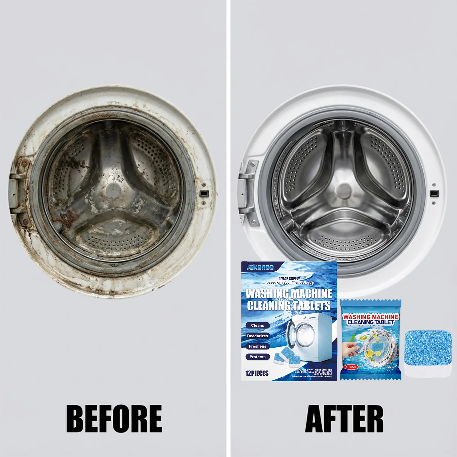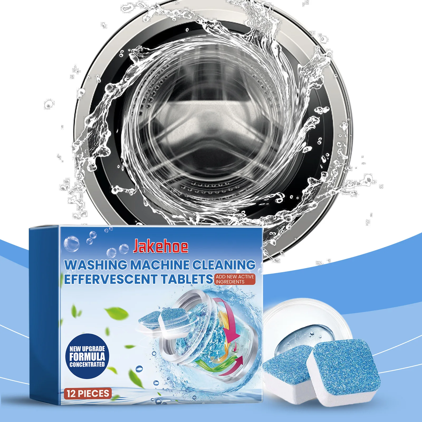 Wasmachine Reinigingstabletten - 12 stuks, voor voor- en bovenladers, dieptereiniging, geurverwijdering, snel oplossend