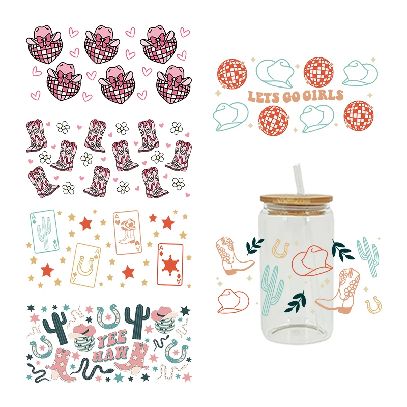 3D UV DTF Transfers Stickers 16oz Cup Wraps Cowboy Gedrukt Voor DIY Glas Keramiek Metaal Leer Etc. D19620