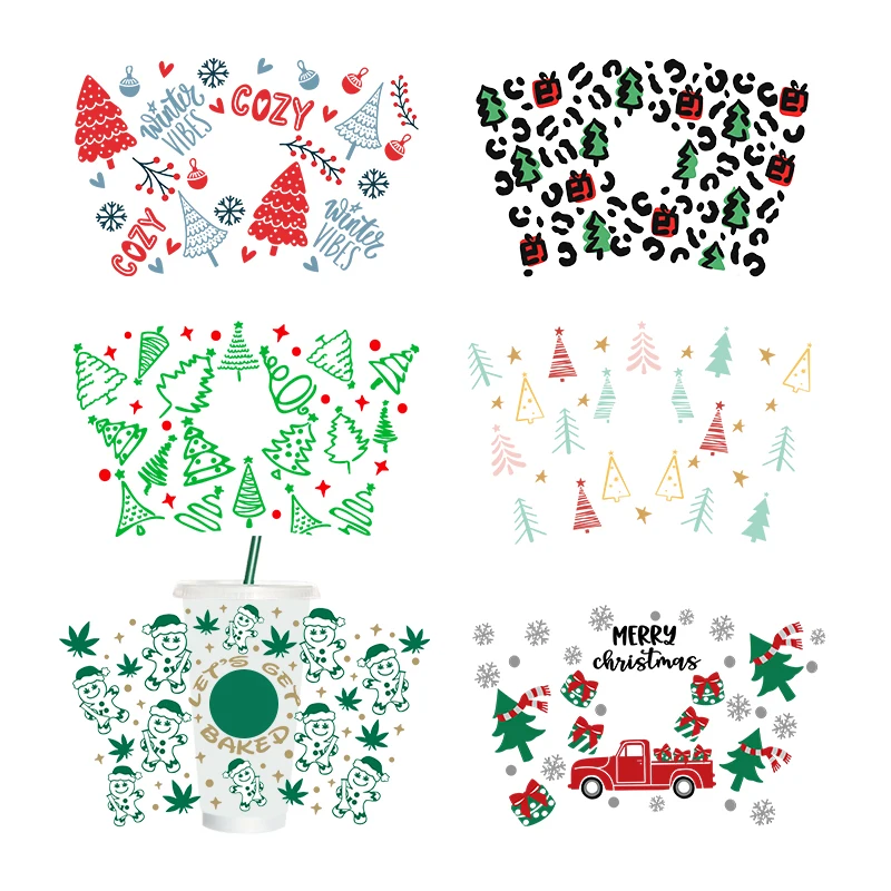 UV DTF Transfers Stickers, 24oz Cup Wraps, Merry Christmas Gedrukt voor DHZ Glas Keramisch Metalen Leer Etc. C253-k