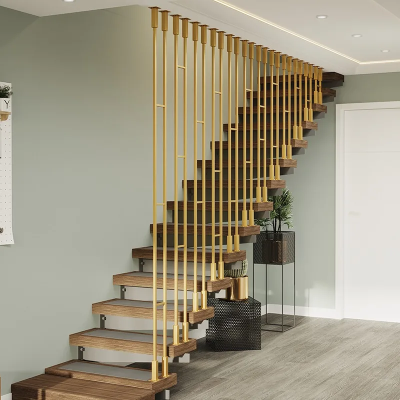Smeedijzeren trapleuning aan de zijkant gemonteerde reling binnenfamilievilla lichte luxe duplex zelf geïnstalleerde leuning creatief