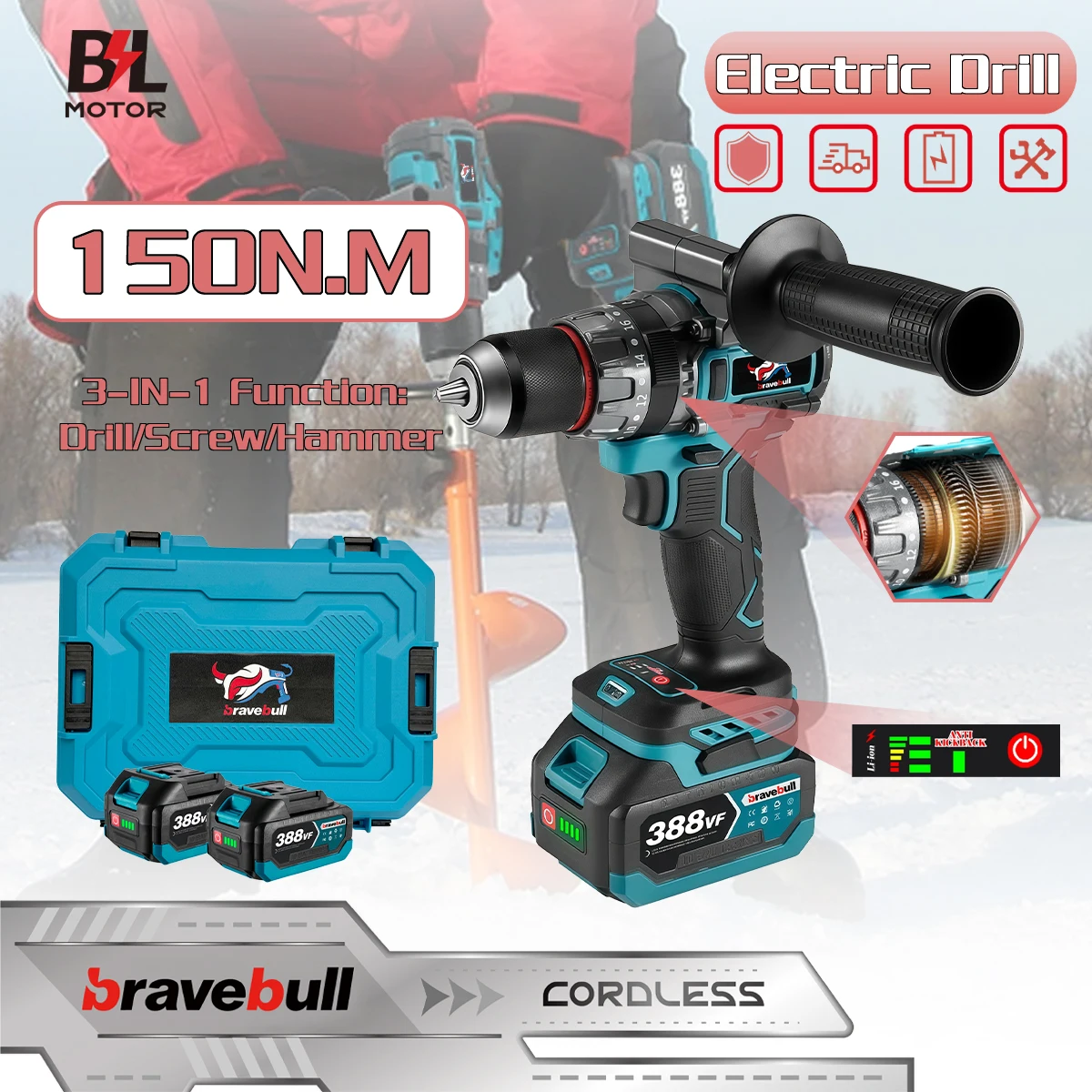 Borstelloze 13mm Chuck Elektrische Klopboormachine 150N.M Accuschroevendraaier Vis Ijsbreken Power Tool Voor Makita 18V Batterij pin