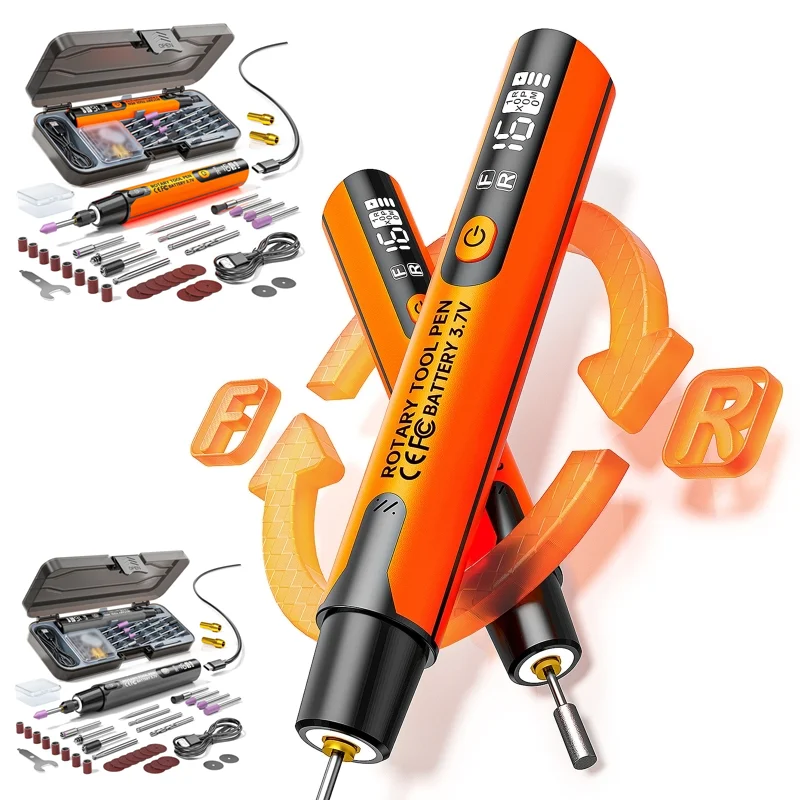Elektrische mini-slijpset met digitaal display, handzame mini-elektrische slijppen met LED-licht, graveer- en polijstset