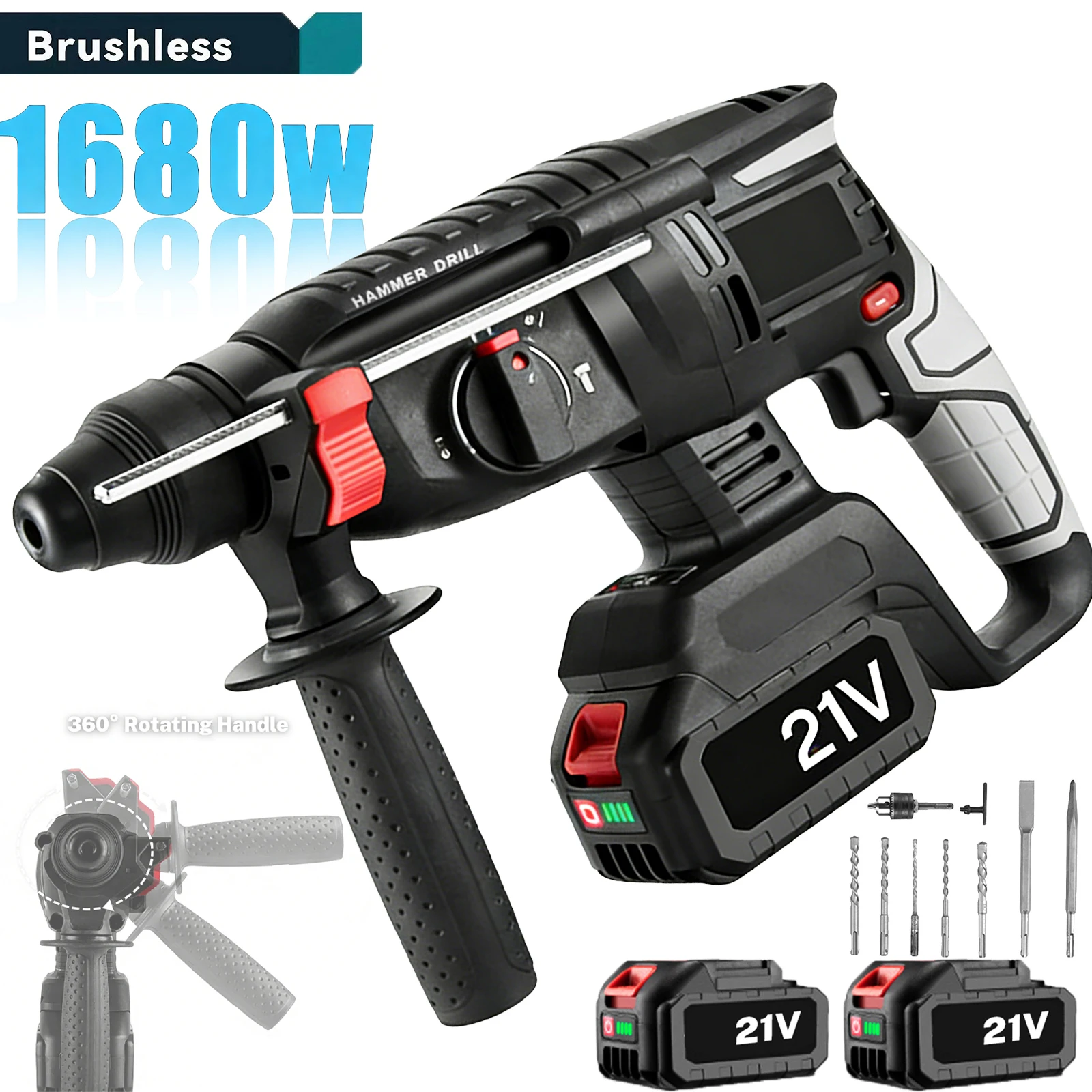 1680W Borstelloze Elektrische Hamerboormachine voor Muur, Hout, Draadloos, Multifunctioneel, Slagboormachine, Rotatiegereedschap voor Makita Accu