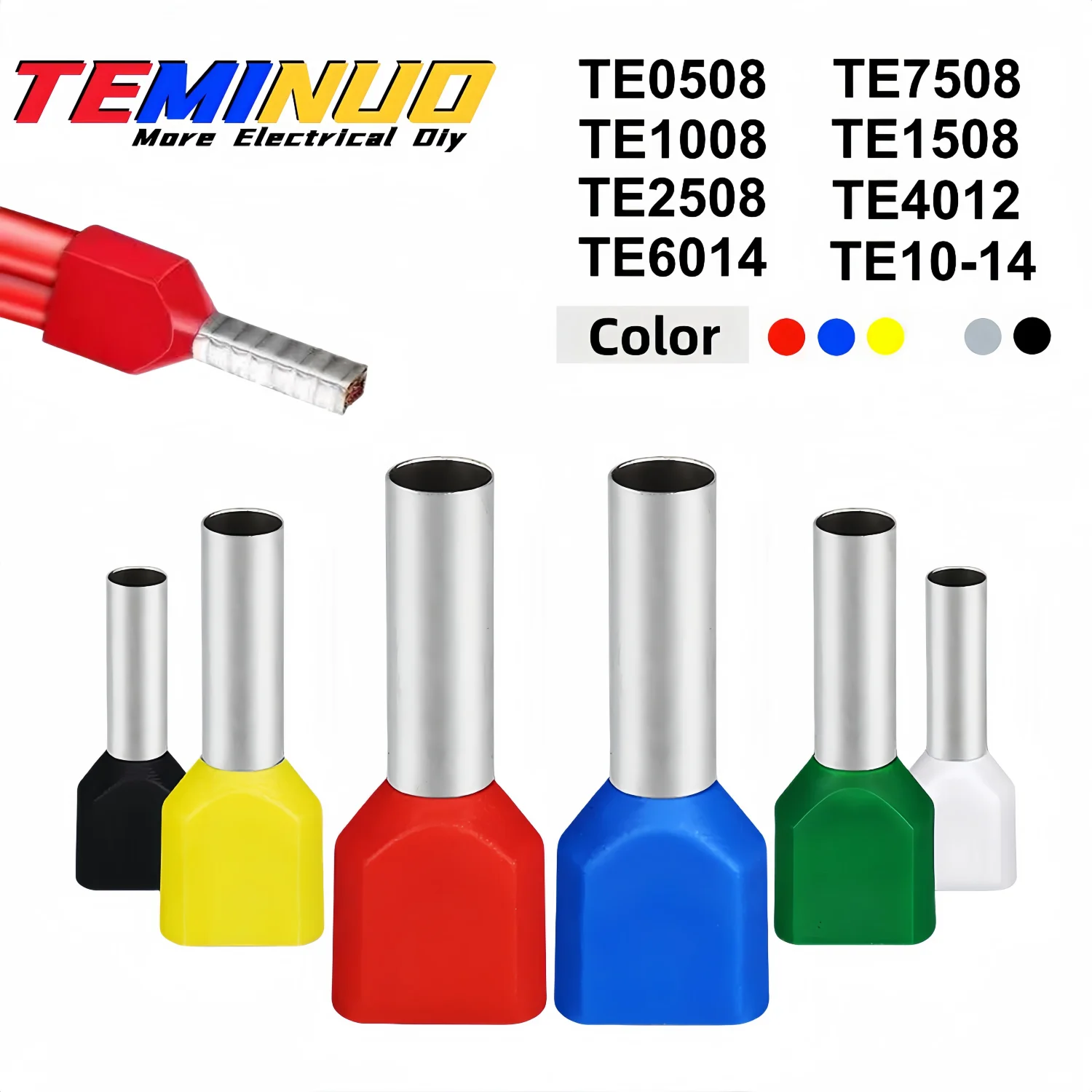 100/700 stuks TE dubbele draad buis pvc geïsoleerde terminal krimpen end koude draad connector elektrische adereindhulzen buisvormige, dubbele draad