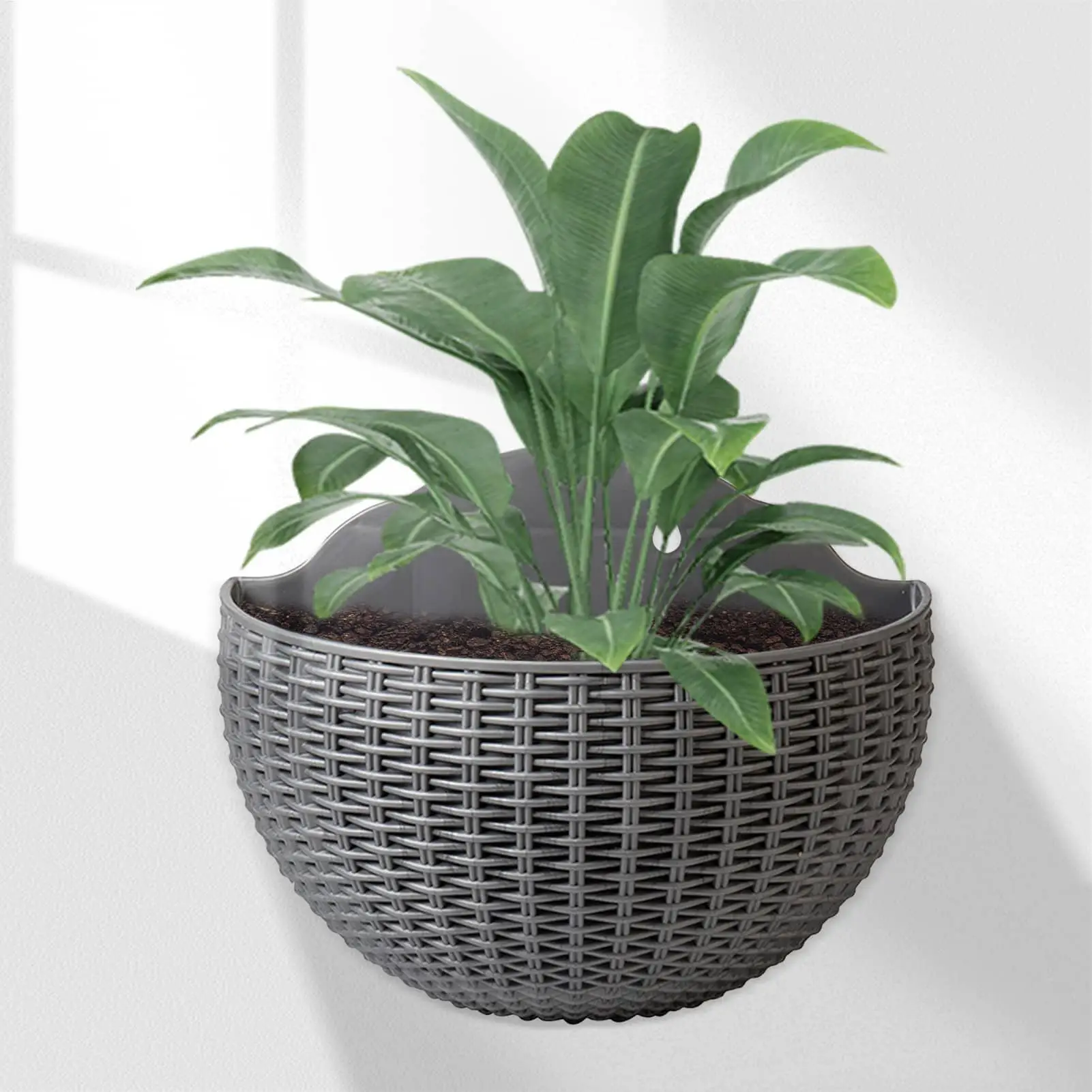 Wandhangende plantenbak Imitatie rotan Europese stijl Halve cirkel plantenmanden Wanddecoraties voor balkonhek binnen buiten