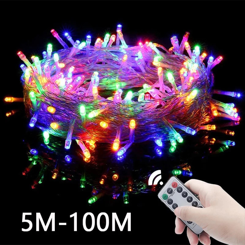 Kerstverlichting Garland Fairy String Ligts Kerstversiering 100M 8 Modus Buiten Voor Thuis Bruiloft Nieuwjaar Vakantie Decor
