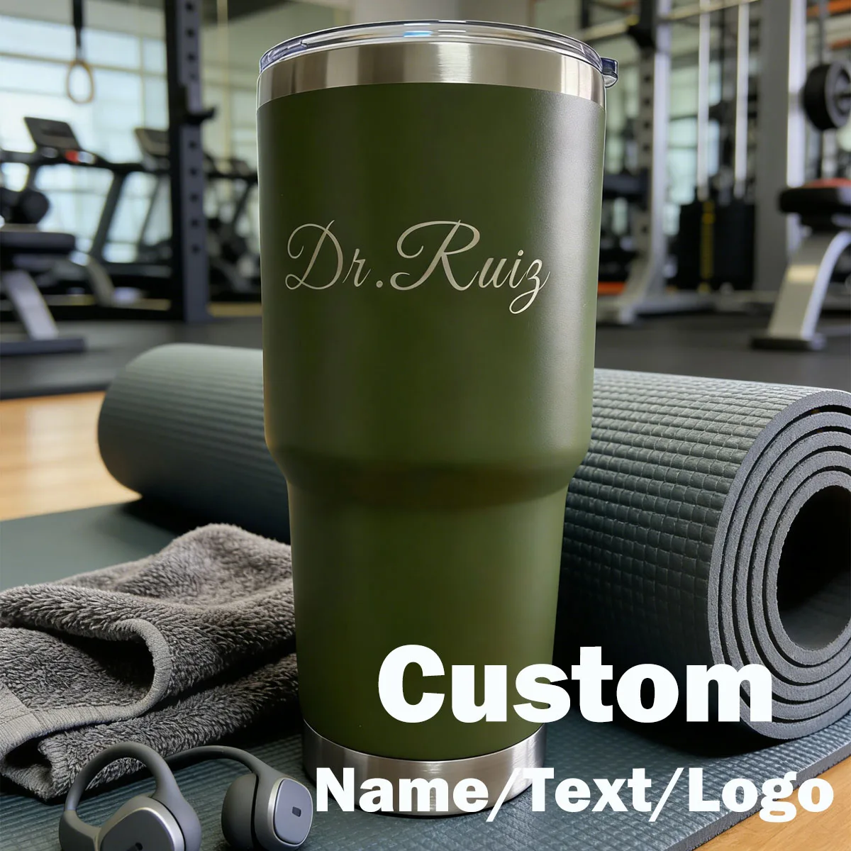 Geperonaliseerde 30 oz vacuüm geïsoleerde roestvrijstalen beker met grote inhoud voor trainingen, yoga, sportschool, kantoor, vrouwen, mannen