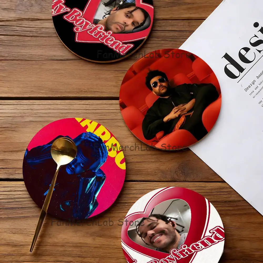 De W-WeekndS 2D patroon ronde houten onderzetter decoratieve koffiekop voor gebruik in koffiezaken, bars, wijn- en bierhuizen