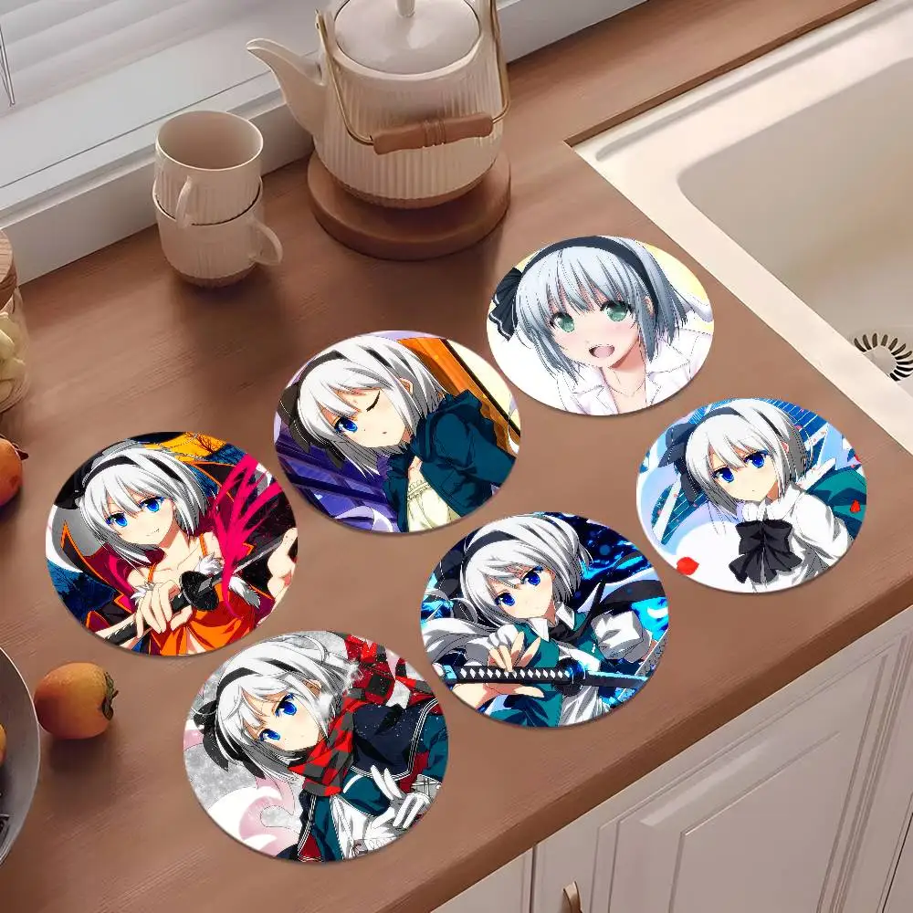 Konpaku Youmu Hot Anime Touhou Onderzetters 10 cm rond hout geschikt voor drankjes thee koffie thuis cadeau keuze vakantie