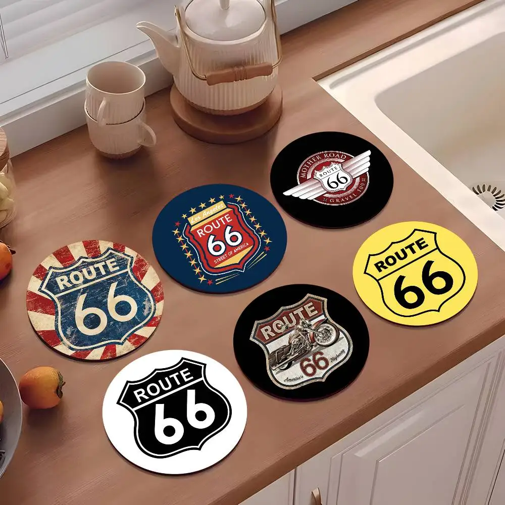 1pc Fashion US R-Route 66 Cool Anime Houten Coaster Kleurendruk Cup Mat Thuis Bureau Decoratie Geschenken