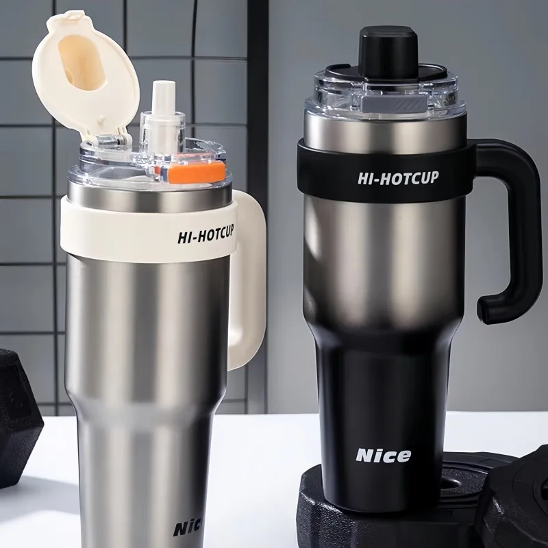 Grote capaciteit keramische geïsoleerde waterfles voor heren, nieuw model 2025, draagbare beker met rietje, roestvrijstalen theescheider