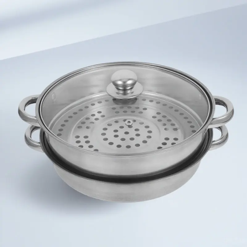 Roestvrijstalen stoompan deksel voor fornuis, keukenbenodigdheden, 2-laags, zilver, premium materiaal, gelijkmatige verwarming
