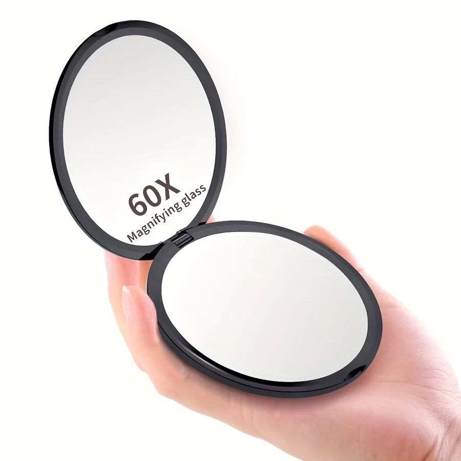 60X draagbare make-upspiegel Reisvergrotende dubbelzijdige opvouwbare make-upspiegel High Definition glazen draagbare zakspiegel