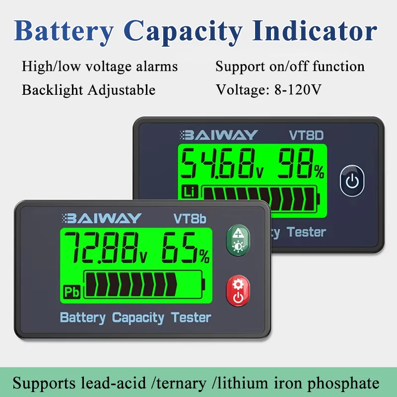 VT8b DC Batterij Voltmeter DC 8V-120V Capaciteitsindicator Meter Lithium LiFePO4 loodzuur Batterijtester voor elektrische voertuigen