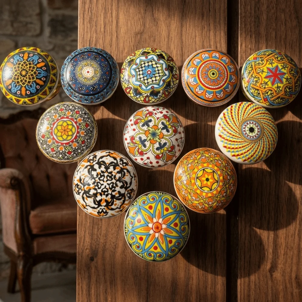 Keramisch materiaal Keramische trekgreep Ontwerp met één gat Ronde vorm Boheemse meubelgreep Boheemse stijl Retrostijl