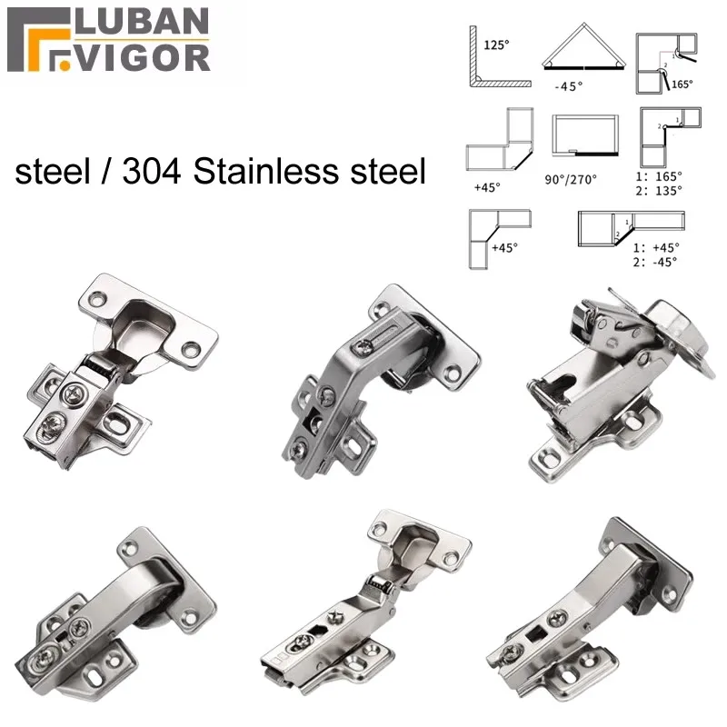 Dempingsscharnier Grote hoek Soft-Close Half-Mortise Verborgen kastscharnieren bufferdemper 165 ° 135 ° 90 ° voor Hoekkastkast