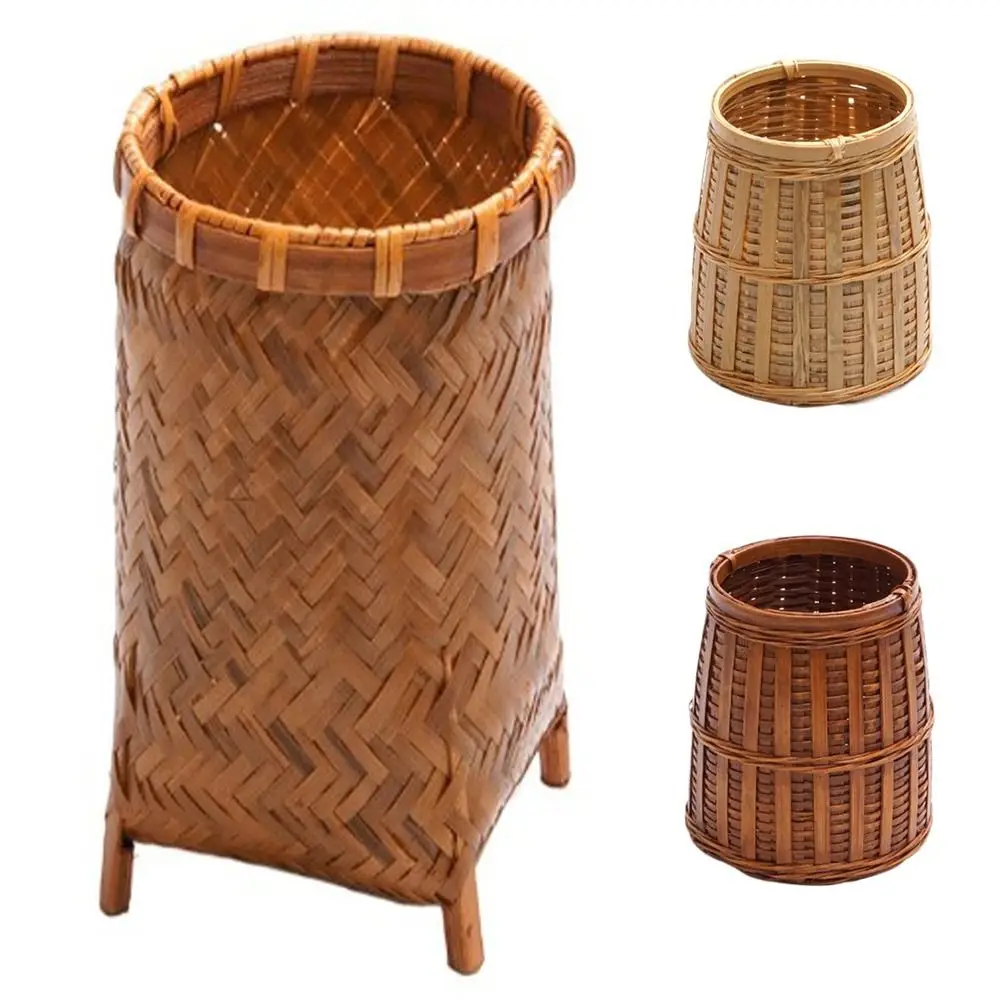 Handgemaakte handgeweven bamboe opbergmand Natuurlijke vierkante bodem potloodhouder Slijtvaste ronde mond