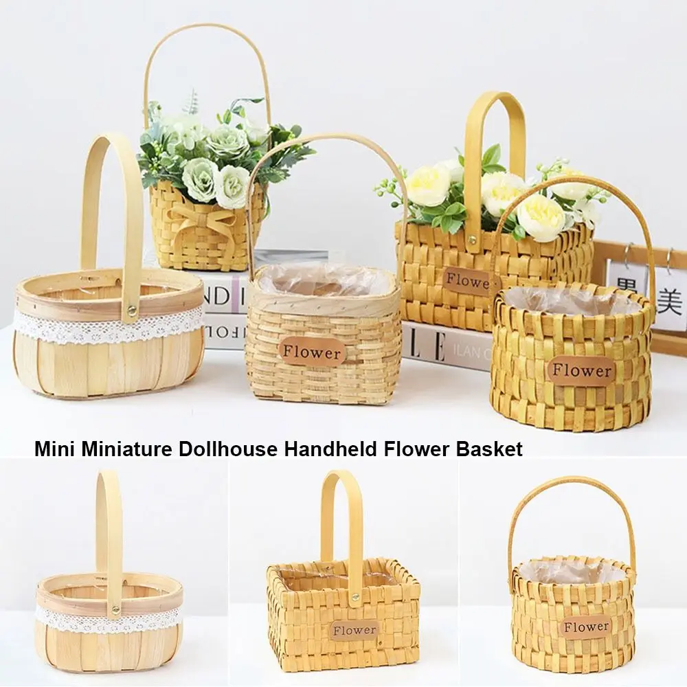 Mini miniatuur poppenhuismand handgemaakte mode handgeweven mand DIY papier wijnstok handheld bloemenmand