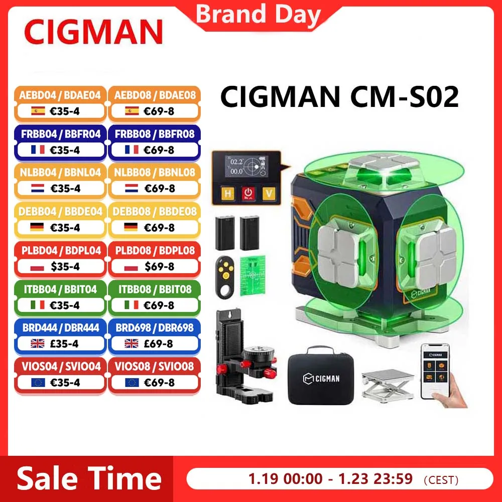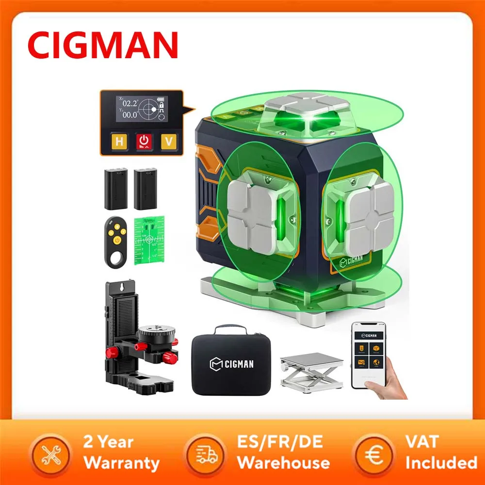 CIGMAN CM-S02 4x360 ° 16 lijnen laserniveau APP-bediening LCD-scherm 40 uur Ultra looptijd Accessoireset met verlengde levensduur van de batterij