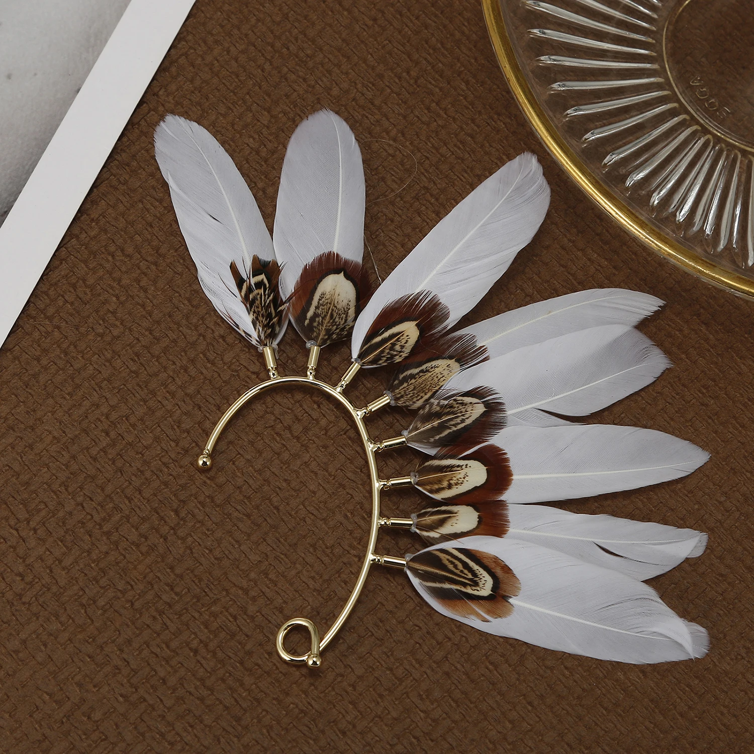 Enkele gouden veren oor wrap - Vintage Boheemse stijl sieraden - Handgemaakt koper verzilverd, verstelbaar en oogverblindend, Perfe