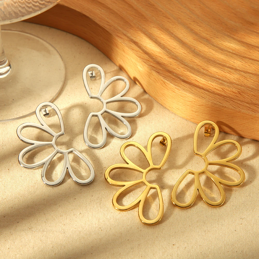 LUXUSTEEL Rvs Bloem Hartvorm Oorbellen Voor Vrouwen Vitnage Chic Lady Meisjes Schroef Stud Oorbellen Mode-sieraden 2023