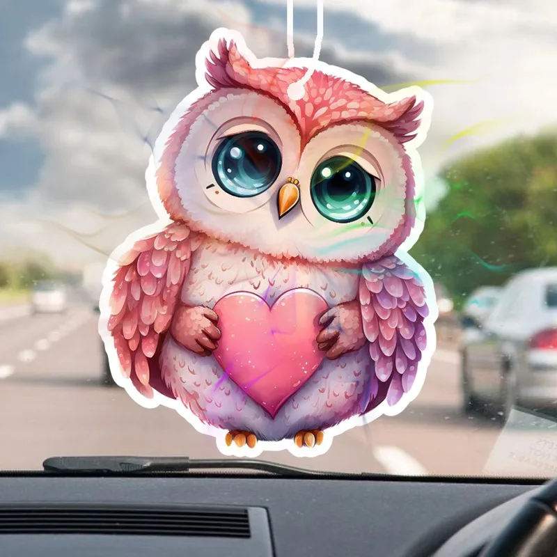 1Pc vormige cartoon uil geurende tabletten auto luchtverfrisser, hangende luchtverfrisser, parfum geur, achteruitkijkspiegel hanger