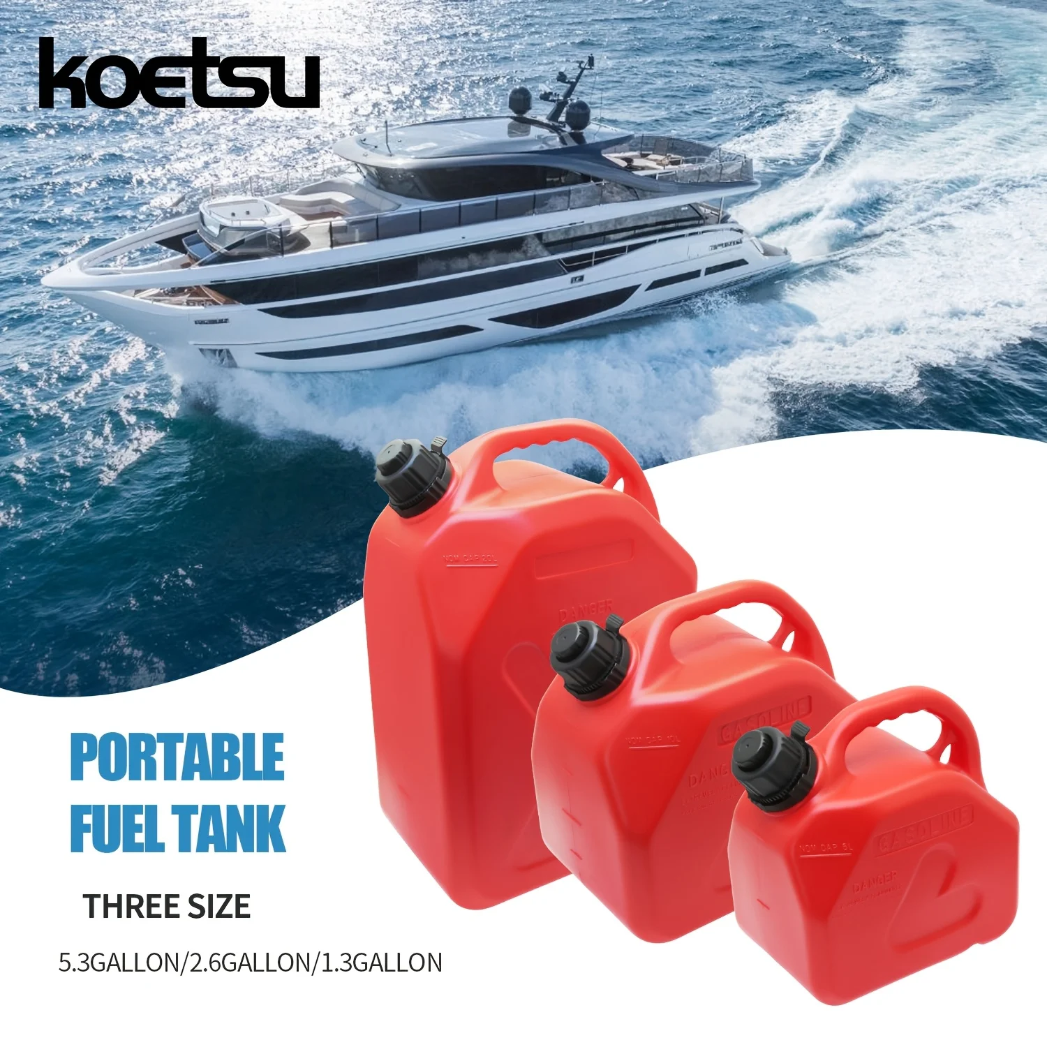 KOETSU Plastic draagbare brandstoftank/reservebrandstofcontainer met ingebouwde kinderslot. Geschikt voor diverse apparatuur.