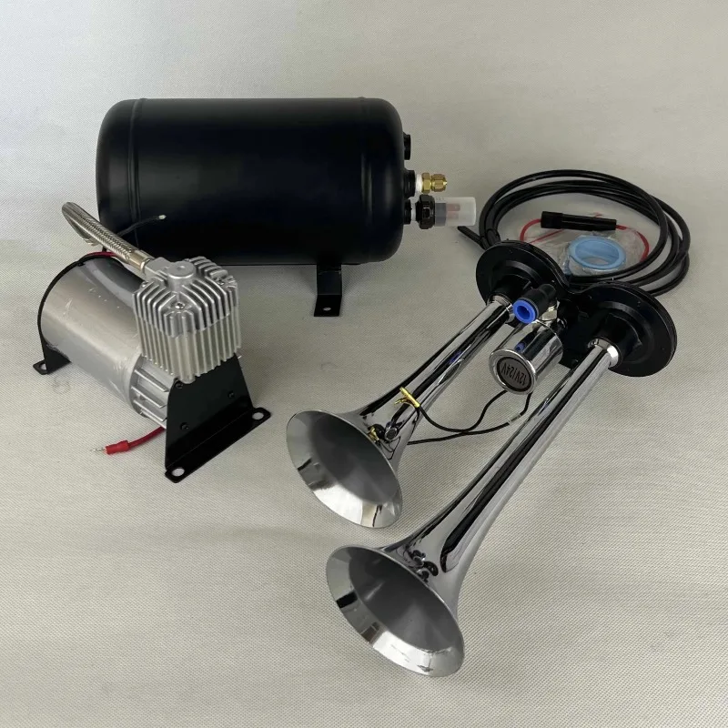 Luchthoorn Chroom Zink Dubbele hoorn Luchthoorn met compressor Elke 12V voertuig Vrachtwagen Lorrys Trein Boot Auto Vrachtwagen
