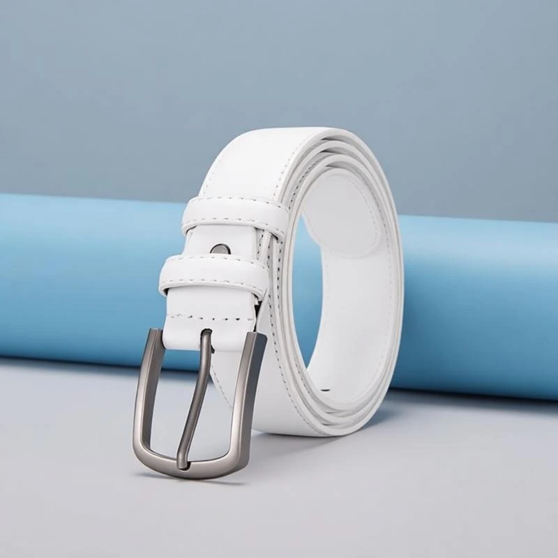 Formele herenriem, effen wit, klassiek stijlvol. Zakelijke casual kleding, ideaal cadeau voor mannen