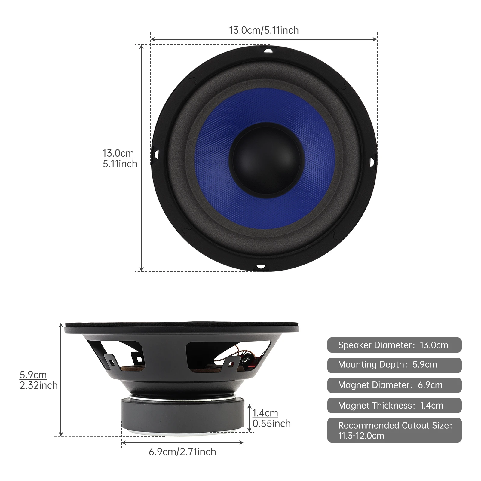 1 stuk 5 Inch Bass Luidspreker Woofer Luidspreker voor Car Audio/Home Theaters, Brede Frequentierespons Car Audio Stereo Speaker