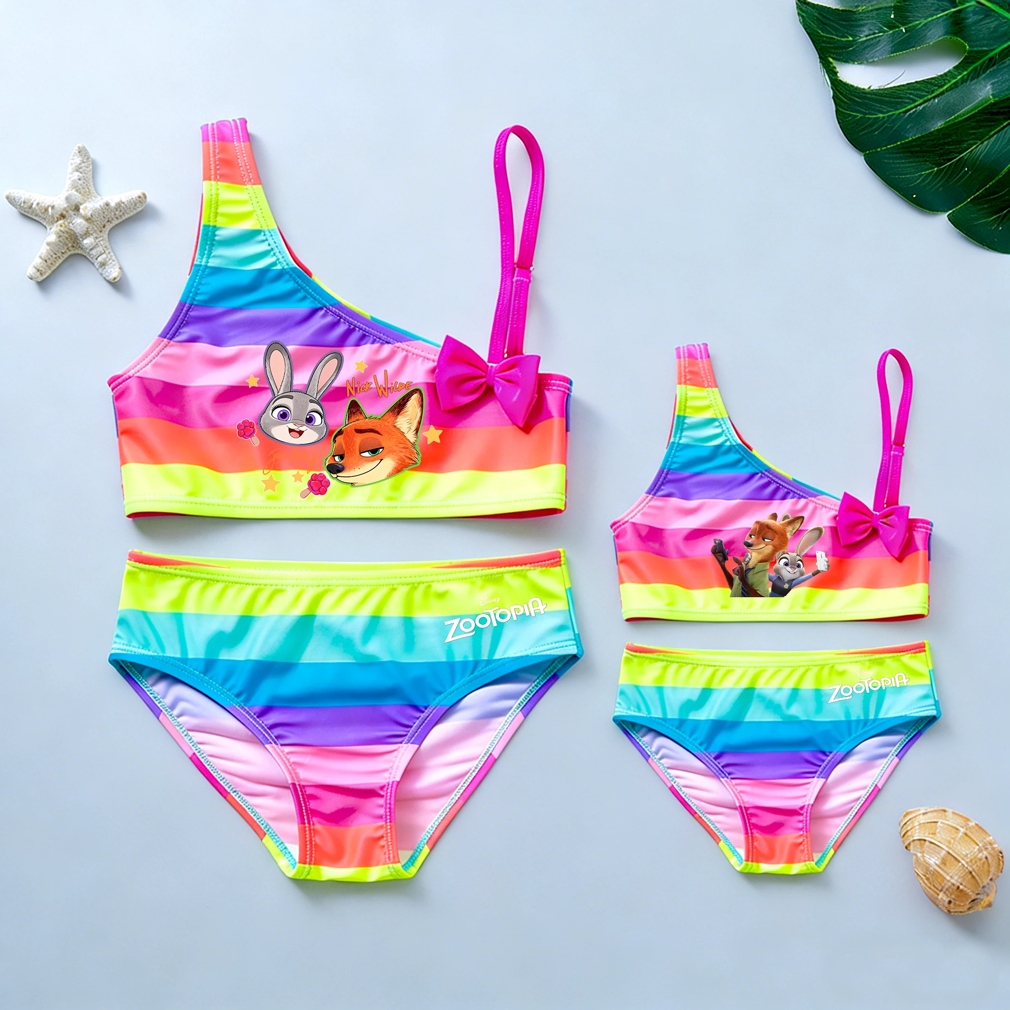 Zootopia Meisjesbadpak Zomer Strandkleding Baden met strik Meisjes 2-delige tankinipakken Kleurrijke zwemkleding 3-12Y