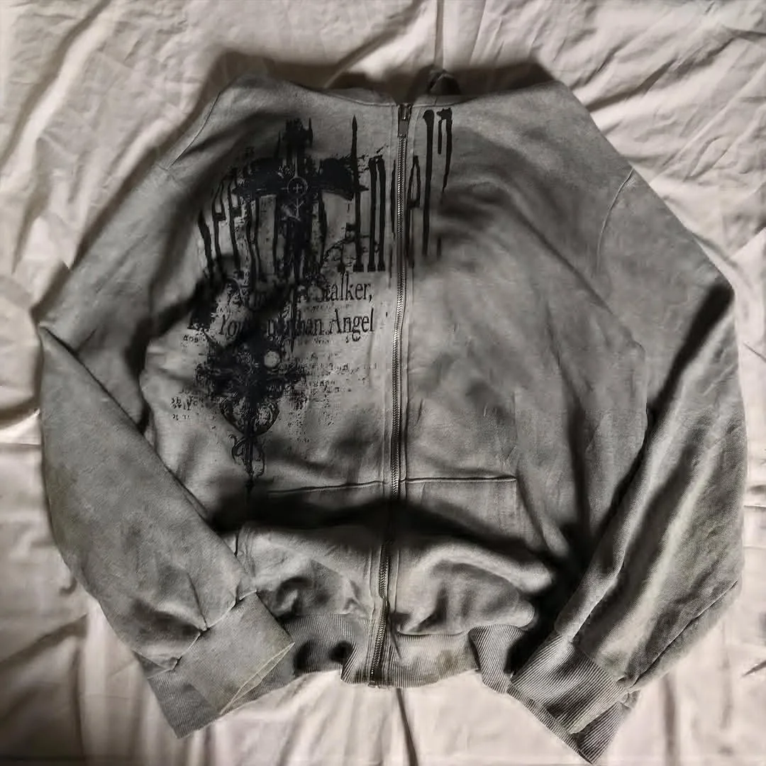 Harajuku Grijze Hoodie Mode Straat Gotische Schedel Oversized Rits Hoodie Mannen Vrouwen Hip Hop Casual Sweatshirt Persoonlijkheid Hoodie